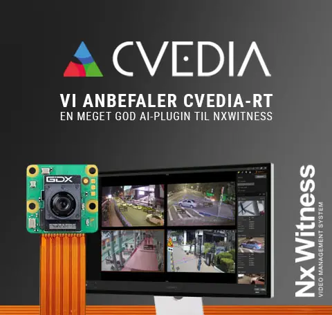 • Kan integreres med løsninger fra NetworkOptix (NxWitness)