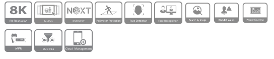 - AI by Recorder supports 4-channel face detection and recognition, up to 20 face databases and 30,000 face images; 4-channel video metadata; 8-channel perimeter protection; 16-channel SMD Plus; 4-channel AcuPick.
