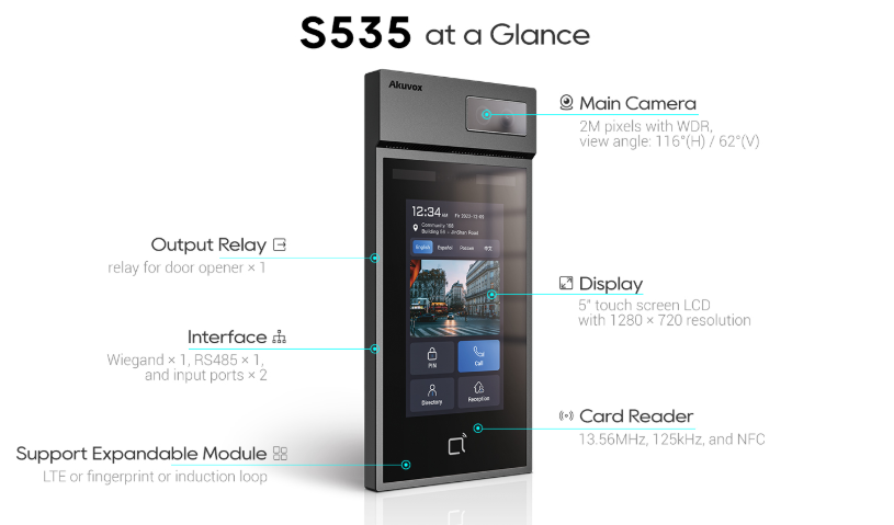 Akuvox’ S535 er laget for å gi en iøynefallende og brukervennlig opplevelse.